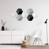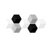 Das Set enthält: 3x weiss, 2x schwarz, 2x grau. Das 7-teilige Set aus Aluminium-Dibond ist in zwei verschiedenen Grössen erhältlich. Die Sechsecke können auch einzeln erworben werden.