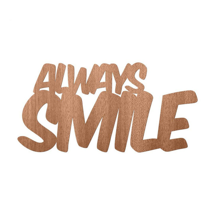 Das Zitat „Always smile“ ist der perfekte Ausdruck, um dir und deinen Gästen ein Lächeln ins Gesicht zu zaubern. Die moderne Mahagoni-Schrift verleiht dem Raum einen trendigen Look, den du immer wieder gerne betrachten wirst. Der Wohlfühlspruch eignet sich perfekt für den Flur, das Wohn- und Schlafzimmer und überall dort, wo du eine schöne Atmosphäre schaffen möchtest. Lass dich von der positiven Ausstrahlung des Wandspruchs inspirieren!
