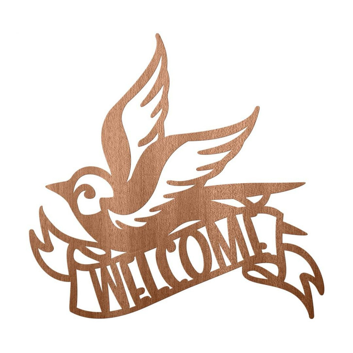 3D Holz Schriftzug Flur - Welcome - Vogel Türschild - Mahagoni