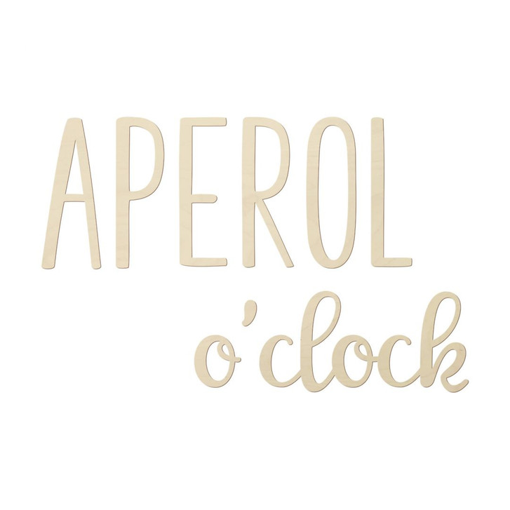 Schmückt euer Zuhause mit trendigen Holzbuchstaben! Die Worte „APEROL o'clock“ verwandeln den Raum in eine moderne Umgebung, die zum Verweilen und Entspannen einlädt. Mit diesem Schriftzug könnt ihr einen Hauch italienischer Trinkkultur in euer Zuhause bringen und er ist eine tolle Deko-Idee für alle, die gerne einen Aperitif geniessen. Ob im Restaurant, in der Bar oder in der eigenen Küche: Die witzige Spruch-Deko sorgt für eine entspannte After-Work-Atmosphäre und eignet sich auch ideal als Geschenk für Aperol-Liebhaber.