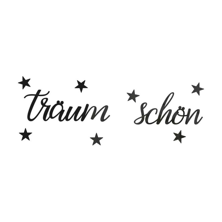 Mit der hochwertigen Acryl-Wanddekoration „Träum schön“ (have sweet dreams) wird das Kinderzimmer zu einem Ort des Wohlbefindens und der Geborgenheit. Dieses dekorative Element verleiht dem Raum nicht nur Stil, sondern auch eine beruhigende Atmosphäre, die sich perfekt für eine ruhige Schlafumgebung eignet. Die Wanddekoration besteht aus elegant geschwungenen Buchstaben, die das Wort „Träum schön“ (deutsch für „süsse Träume“) bilden, und ist von zarten Sternen umgeben, die an den Nachthimmel erinnern und zum Träumen anregen.