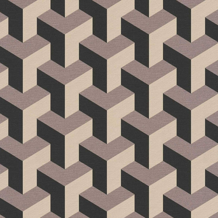 3D-Tapete Würfelmuster Schwarz Beige Grau – Geometrische Vliestapete modern