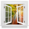 3D Wandtattoo Fenster quadratisch - Goldener Herbst