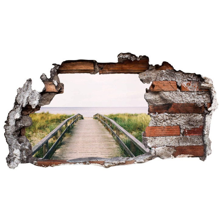 Der beste Ausblick in den eigenen vier Wänden? Unsere 3D-Wandsticker machen es möglich. Der fotorealistische Druck erweckt den Eindruck, als würde man durch ein Loch in der Wand direkt auf das Motiv blicken. Über die Grasdüne zum Ostseestrand: Diesen Weg gehst du gerne. Ein Spaziergang am Ufer wartet auf dich!