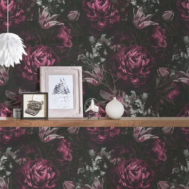 A.S. Création Blumentapete PintWalls Vliestapete Lila, Schwarz, Grau