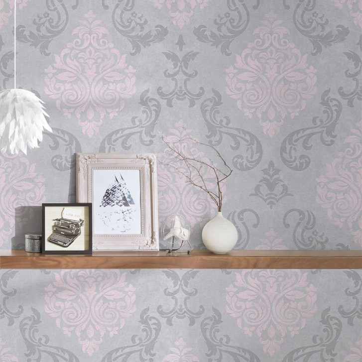 A.S. Création Vliestapete Memory Barocktapete mit Ornamenten Glitzereffekt grau, metallic, rosa