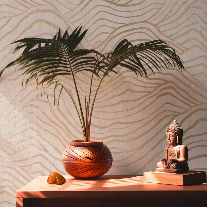 Abstrakte 3D-Tapete mit Wellenmuster Grau Gold - Vliestapete Metallic-Effekt - Rolle
