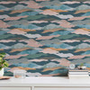Pintwalls II - Moderne Vliestapete mit abstraktem Bergmotiv in Blau, Beige und Rosa für eine stilvolle und kunstvolle Wandgestaltung.