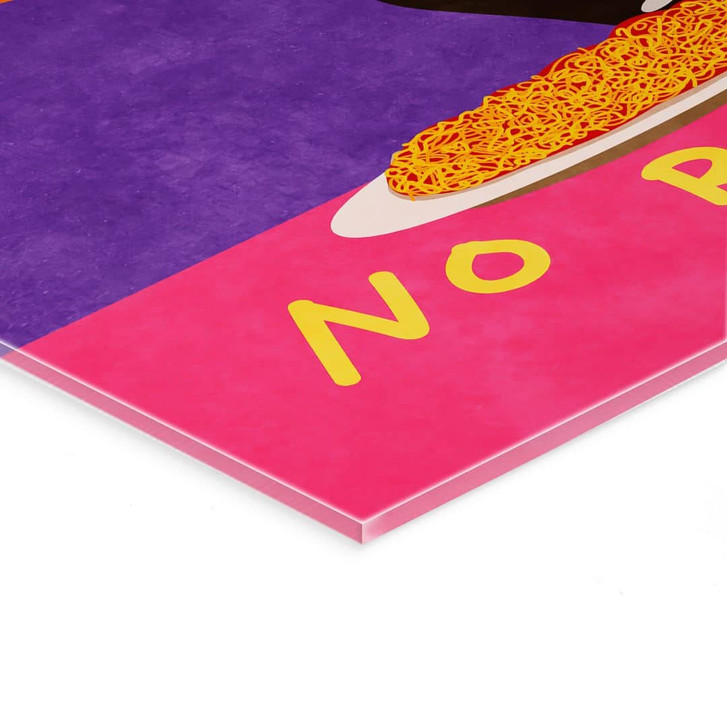 Schmücke dich mit diesem Schmuckstück und schaffe dir einen Ort zum Wohlfühlen und Geniessen. Mit dieser Illustration hat Raissa ein fröhliches Motiv geschaffen, das perfekt für Pasta- und Weinliebhaber ist. Es zeigt eine rothaarige Frau, die genüsslich Spaghetti isst. In der einen Hand hält sie ein Glas Rotwein. Dazu passt der humorvolle Spruch „Eat Spaghetti, no regreti“ perfekt. Der moderne Druck macht als Acrylglasbild ausgestellt zusätzlich Appetit. Und das Acrylglasbild im Hochformat sorgt mit seiner besonderen Oberfläche für ein besonders strahlendes Highlight in Ihren vier Wänden. Seine leuchtenden Farben leuchten stark auf dem Material und heben das Motiv hervor.