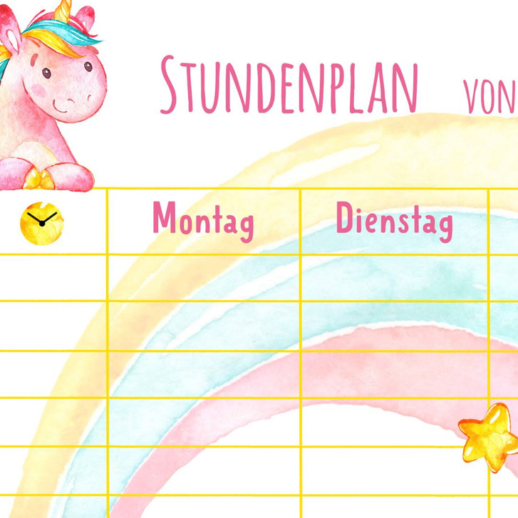 Süsser Stundenplan mit Einhörnern fürs Kinderzimmer