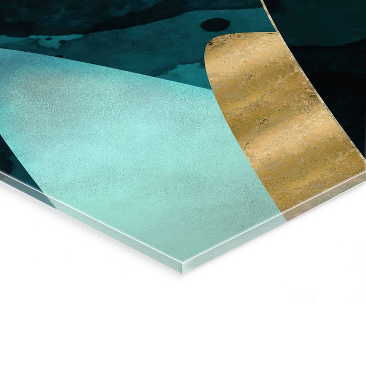 Acrylglasbild Abstrakte Berge in Gold und Blau - SpaceFrog Designs
