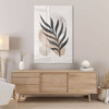Die klaren Linien des Blattelements erzeugen eine spannende Dynamik, während die weichen, transparenten Farbakzente für Ruhe und Ausgeglichenheit sorgen. Diese Kombination macht das Bild vielseitig einsetzbar – ob als zentraler Blickfang oder als ergänzendes Element zu einer bestehenden Einrichtung.