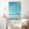 Dieses Bild vermittelt eine tiefe Sehnsucht nach fernen Orten und Abenteuern. Es lädt dazu ein, sich in Gedanken zu verlieren und sich vorzustellen, wie die warmen Wellen des Meeres sanft an den Füssen plätschern, während man die friedliche Atmosphäre in vollen Zügen geniesst. Die farbenfrohe, minimalistische Ästhetik macht dieses Bild zu einem echten Hingucker, der jedem Raum ein Gefühl von Freiheit und Gelassenheit verleiht.
