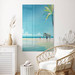 Dieses Bild vermittelt eine tiefe Sehnsucht nach fernen Orten und Abenteuern. Es lädt dazu ein, sich in Gedanken zu verlieren und sich vorzustellen, wie die warmen Wellen des Meeres sanft an den Füssen plätschern, während man die friedliche Atmosphäre in vollen Zügen geniesst. Die farbenfrohe, minimalistische Ästhetik macht dieses Bild zu einem echten Hingucker, der jedem Raum ein Gefühl von Freiheit und Gelassenheit verleiht.
