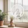 Unsere runden Fensterbilder zum Aufhängen sind aus hochwertigem Acrylglas und haben ein Loch für eine Halterung, wie z.B. für unser Baumwollseil.