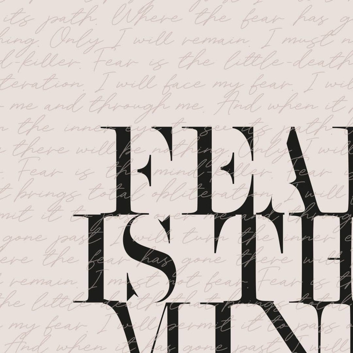 „Ich darf keine Angst haben – Angst ist ein Gedankenvernichter.“ Diese bekannten Worte stammen von dem Buchautor Frank Herbert, der die Vorlage für den Film „Dune“ schuf. Der vollständige Spruch ist im Hintergrund des inspirierenden Motivs zu lesen. Dekoriere mit dem motivierenden Filmzitat und lass die Wände sprechen!