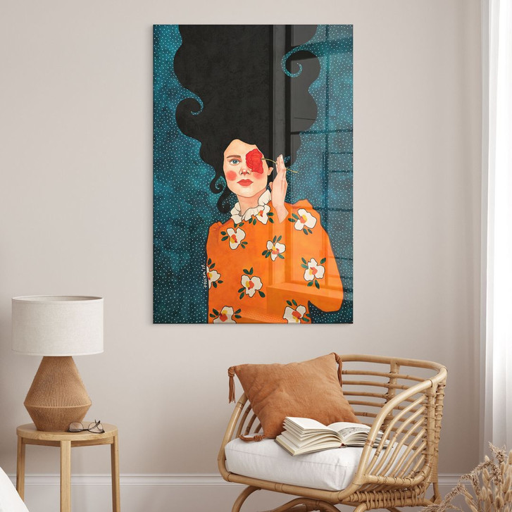 Acrylglasbild Geheimnisvolle Frau mit Rose - Hülya