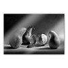 Das lustige Foto zeigt Birnen, die sich um ein Marmeladenglas versammelt haben, in Erinnerung an das Birnenmitglied, das zu Marmelade verarbeitet wurde... Ein ironisches und einzigartiges Motiv für die Küche oder ähnliche Funktionsräume!