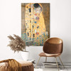 Eine harmonische Wandgestaltung ist wichtig für das Wohlbefinden in den eigenen vier Wänden. Farblose Wände wirken oft kahl und langweilig. Mit diesem zeitlosen Klassiker kannst du dein Zuhause schnell aufpeppen. „Der Kuss“ von Klimt entstand 1907/08 und ist eines seiner berühmtesten Werke. Die Darstellung des Liebespaares gilt als ikonisches Bild romantischer Liebe. Das Kunstwerk, das ursprünglich „Liebespaar“ hiess, zeigt einen Mann, der zärtlich die Wange seiner Geliebten streichelt. Während sie kniet, hält der Mann sie in seinen Armen. Dieser hochwertige Kunstdruck kann problemlos in Ihrem Schlaf- oder Wohnzimmer aufgehängt werden, wo er einen wunderbaren Blickfang darstellt.