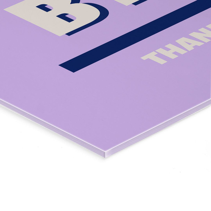 Das Acrylglasbild „Bitte bis 9 Uhr verlassen“ ist eine humorvolle und zugleich stilvolle Ergänzung für jedes Zuhause, Büro oder jeden Veranstaltungsort. Das Motiv ist einfach, aber aussagekräftig: Grosse, auffällige Buchstaben fordern höflich, aber bestimmt dazu auf, den Raum bis 9 Uhr morgens zu verlassen. Der Text ist in einer modernen, fetten Schrift geschrieben, die sofort ins Auge fällt. Die Farbkombination aus einem beruhigenden Violett und cremefarbenem Text mit dezentem Schattierungseffekt verleiht dem Bild eine moderne und trendige Ästhetik.