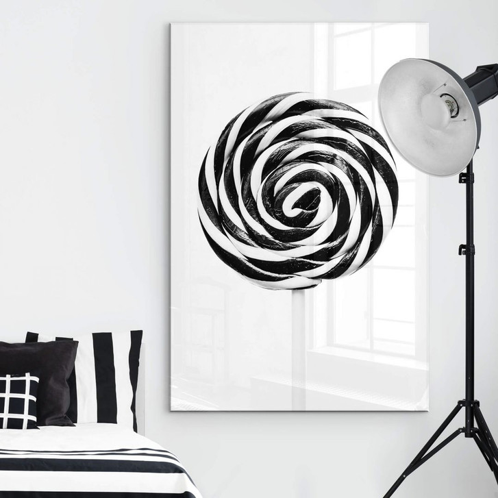 Mit diesem Interior Upgrade kannst du dein Zuhause schnell und einfach aufwerten. Wem es zu bunt wird, der kann mit schwarz-weissen Motiven toll dekorieren. Diese beliebte Farbkombination lässt sich mit vielen Stilen kombinieren und schafft Räume, in denen man sich entspannen und wohlfühlen kann. Mit diesem Foto von Sisi & Seb kannst du neue Akzente an der Wand setzen. Das Acrylglasbild mit dem süssen Lolli eignet sich sowohl für die Küche als auch für das Wohnzimmer.