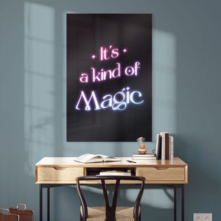Möchtest du deiner Inneneinrichtung einen besonderen Charakter verleihen? Unsere Typografie-Bilder verleihen der Wand eine ansprechende Note. Der Spruch „It's a kind of magic“ erinnert an den berühmten Song der britischen Rockband Queen. Die bunten Buchstaben auf schwarzem Hintergrund sorgen für schöne Farbkontraste und erzeugen mit der Aussage „It's a kind of magic“ ein positives Gefühl. Lass dich jeden Tag von diesem Spruch inspirieren! Zu guter Letzt besticht das Zitat-Acrylglasbild durch sein elegantes Design, das durch die ausgewählten Materialien und die schwarze Farbgebung betont wird. So entsteht ein harmonisches Dekorationselement.