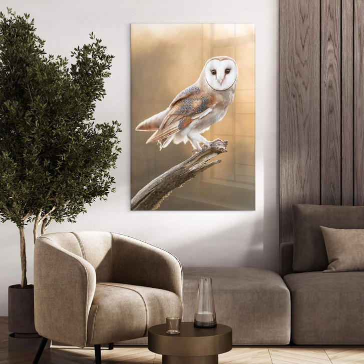 Acrylglasbild van Duijn - Schleiereule in goldenem Licht