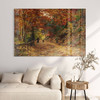 Dieses beeindruckende Kunstwerk von Olga Wisinger-Florian lädt zu einem Spaziergang durch eine herbstliche Waldlandschaft ein. Der mit fallenden Blättern bedeckte Weg schlängelt sich sanft durch die Landschaft, während die warmen Töne von Gold, Rost und tiefem Grün die Atmosphäre eines sonnigen Herbsttages einfangen. Die Blätter glänzen im Licht und der Weg scheint in eine verborgene Welt zu führen, in der Stille und Natur in perfekter Harmonie sind.