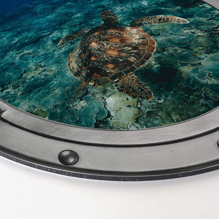 Zuhause ist der Ort, an dem du einfach du selbst sein kannst. Umso wichtiger ist die harmonische Wandgestaltung für eine beruhigende Umgebung. Geniesse den Blick durch das runde Bullauge in die türkisfarbene Unterwasserwelt. Die Schildkröte schwimmt allein durch das grosse Meer und folgt den Meeresströmungen.