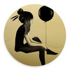 Eine junge Frau sitzt ruhig da und hält einen schwarzen Ballon. Ein entspannter und gelassener Nachmittag, um die Seele baumeln zu lassen. Hol dir moderne Kunst nach Hause und sei Teil des geheimnisvollen Märchens!