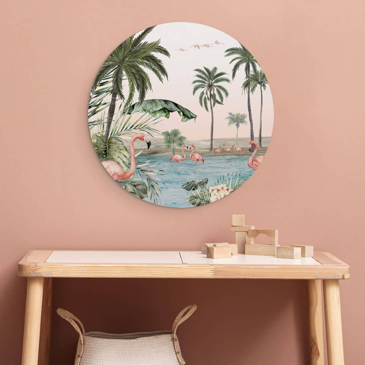 Alu-Dibond Kikki Belle - Flamingo Oase - Rund