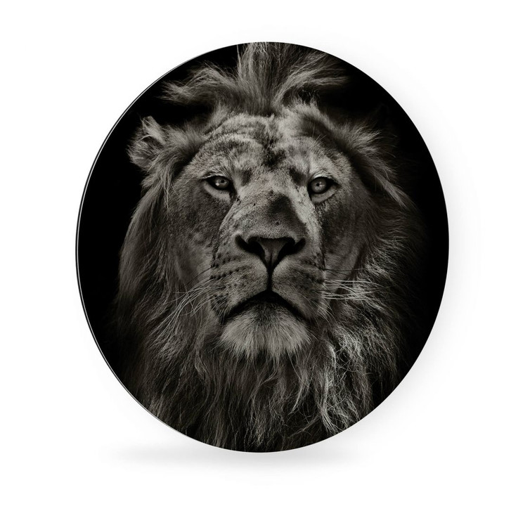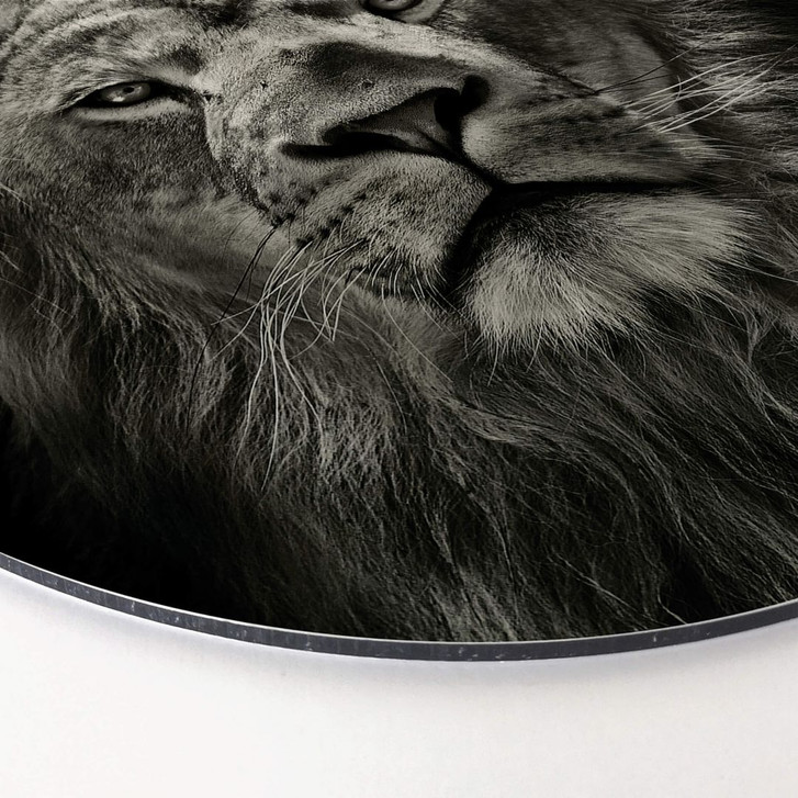 Der Löwe, König der Tiere, ist ein aussergewöhnlicher Blickfang an jeder Wand. Er blickt mit erhobenem Kopf in die Kamera. Ein eindrucksvolles Schwarz-Weiss-Bild, das jedem Raum eine besondere Note verleiht.