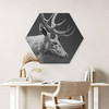 Alu-Dibond mit Silbereffekt Hirsch mit Geweih schwarz-weiss - Roberg - Hexagon