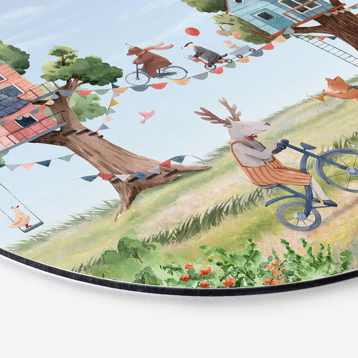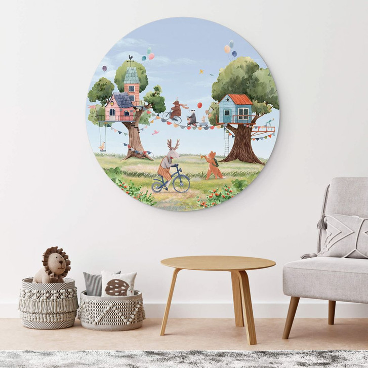 Nicht nur zum Schlafen da: Kinder- und Jugendzimmer haben viele Funktionen. Schliesslich werden sie zum Spielen, Lernen und Erwachsenwerden genutzt. Deshalb sind unsere Dekorationen auf diese Anforderungen ausgelegt. Mit dem runden Wandbild mit der liebevollen Illustration von Oliver Robins verwandeln Sie es mit wenig Aufwand in ein kindgerechtes Paradies. Lass dein Kind Teil der Baumhausparty sein. Hier feiern ein Bär, ein Dachs, ein Hase, ein Elch und ein Fuchs mit einem Luftballon.