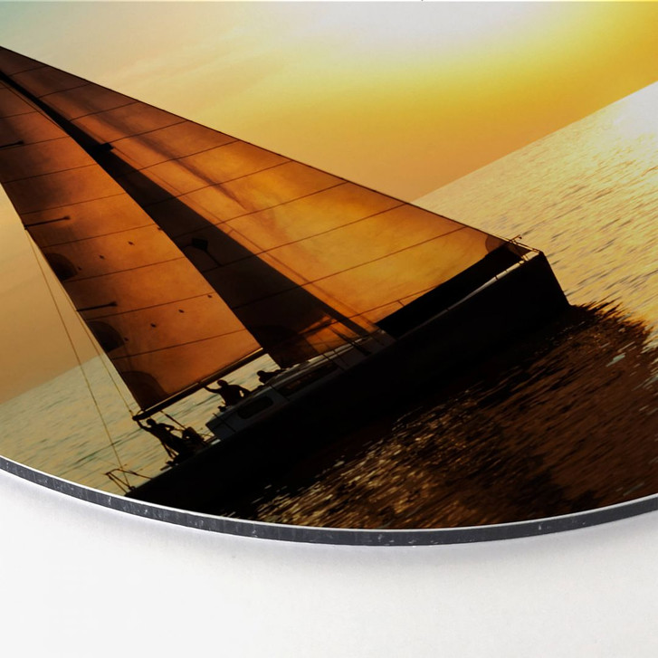 Aluminium Dibond Segelboot im Sonnenuntergang – rund