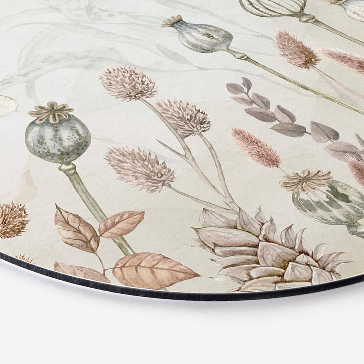 Gönne dir dieses dekorative Stück für dein Zuhause und fühle dich glücklich. Lass dich von den floralen Motiven von Sir Edward inspirieren und bringe zarte Farben an deine Wand! Das runde Wandbild „Dried Flowers White“ zeigt eine Wiese mit verschiedenen blühenden Blumen und Pflanzen und besticht durch feine Details.
