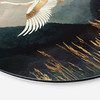 Manchmal sind es die kleinen Dinge, die uns glücklich machen. Bei der Wohnungseinrichtung ist das nicht anders. Dieses Bild lässt einen Raum offen und einladend wirken. Lass dich von unseren Deko-Ideen inspirieren und verleihe deinem Zuhause einen ganz eigenen Stil. Der Grafik-Kunstdruck von SpaceFrog Designs zeigt einen Kranich in Weiss und Gold, der mit ausgebreiteten Flügeln über eine Graslandschaft fliegt. Im Hintergrund sind dunkle Berge zu sehen. Dieses runde Wandbild bringt einen Farbtupfer, der deinem Zuhause einen ganz neuen Look verleiht.