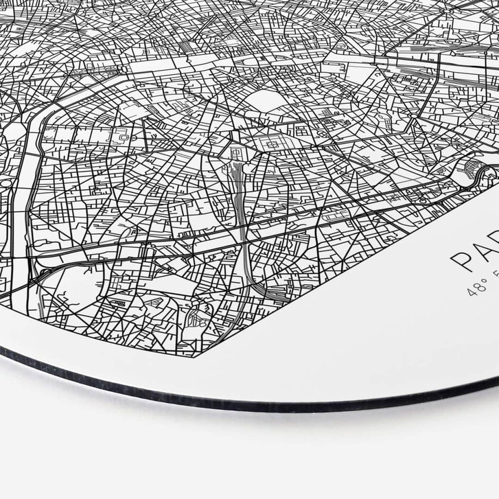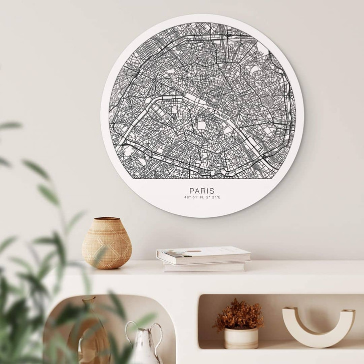 Schwarz-Weiss-Karte von Paris als rundes Wandbild
