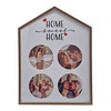 Die vier runden Bilderrahmen bieten Platz für deine Lieblingsfotos, die durch das minimalistische Design in den Mittelpunkt gerückt werden. Der Rahmen besteht aus hochwertigem Holz in einem warmen Braunton, was ihm ein natürliches und einladendes Aussehen verleiht. Die runde Form der Ausschnitte verleiht dem Gesamtbild eine weiche, harmonische Note, die perfekt zum warmen Schriftzug „Home Sweet Home“ passt.