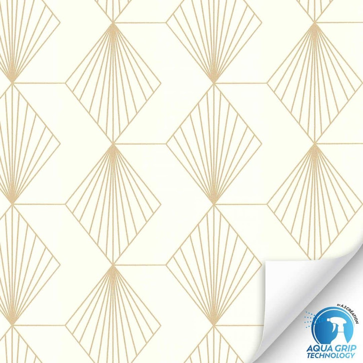 WOW - DESIGNDROP - Moderne Art-Déco-Tapete in Weiß und Gold – einfach mit Wasser anbringen und WOW erleben!