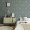 Pure Elegance - Elegante Barock-Tapete mit geprägtem Ornament in Mint und Silber – stilvoll & klassisch für edle Räume.
