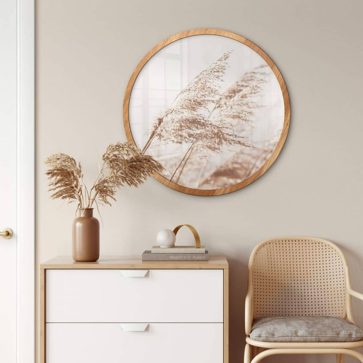 Rund und wirkungsvoll: Neben den klassischen Bilderrahmen in rechteckiger und quadratischer Form sticht das harmonisch abgerundete Format besonders hervor. Es wird selten verwendet und ist daher besonders ansprechend und hat einen dekorativen Charme. Der runde Bilderrahmen eignet sich perfekt für Porträtbilder, aber auch Natur- und Landschaftsfotos profitieren von der kreativen Form ohne Ecken und Kanten. Mit diesem MDF-Bilderrahmen rahmst du dein Lieblingsmotiv ein – das Bild wird perfekt in Szene gesetzt. Nicht zuletzt wirkt das runde Format entspannend auf den Betrachter und der Gesamteindruck verbessert das Flair deines Zuhauses. Der Bilderrahmen in Braun ist aus durchgefärbtem MDF gefertigt, die Acrylglasabdeckung ist 1 mm stark und die stabile Rückwand gibt dem Ganzen festen Halt.
