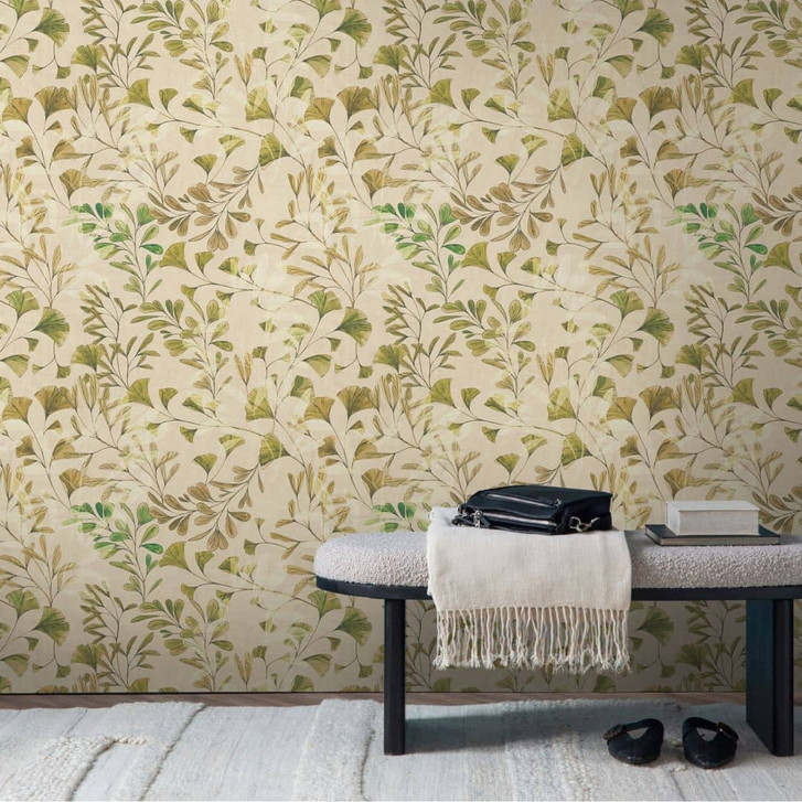 Blätter-Tapete Ginkgo Natur Creme – Vliestapete mit sanften Grüntönen – Modern & Elegant