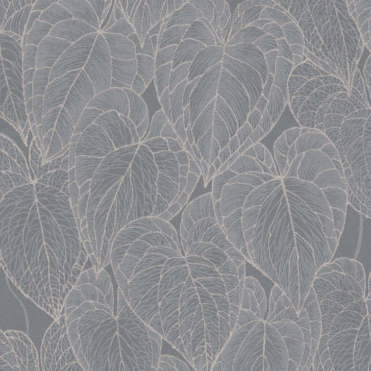 Daniel Hechter 7 -Moderne Mustertapete mit tropischem Blätterdesign in Grau und Silber