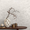 History of Art 2 - Elegante Mustertapete mit feinen Bambus-Blättern in Hellgrau und Weiß.