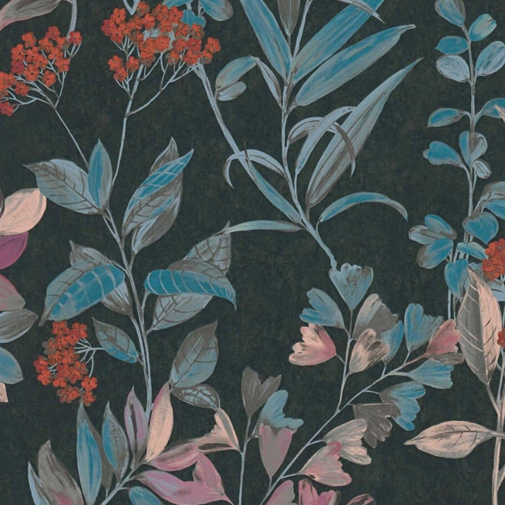 Blumen-Tapete mit Blüten Schwarz bunt - Vliestapete floral im Aquarell-Stil