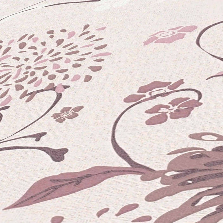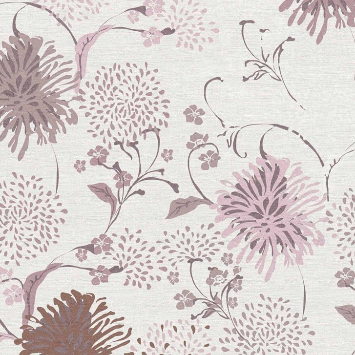 Blumentapete Abstrakt Weiss Lila - Florale Tapete - Naturtapete Wohnzimmer