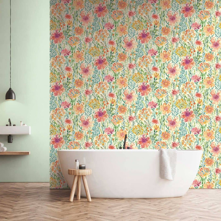 Blumentapete Aquarell Bunt Grün - Florale Vliestapete - Frühlingshaft