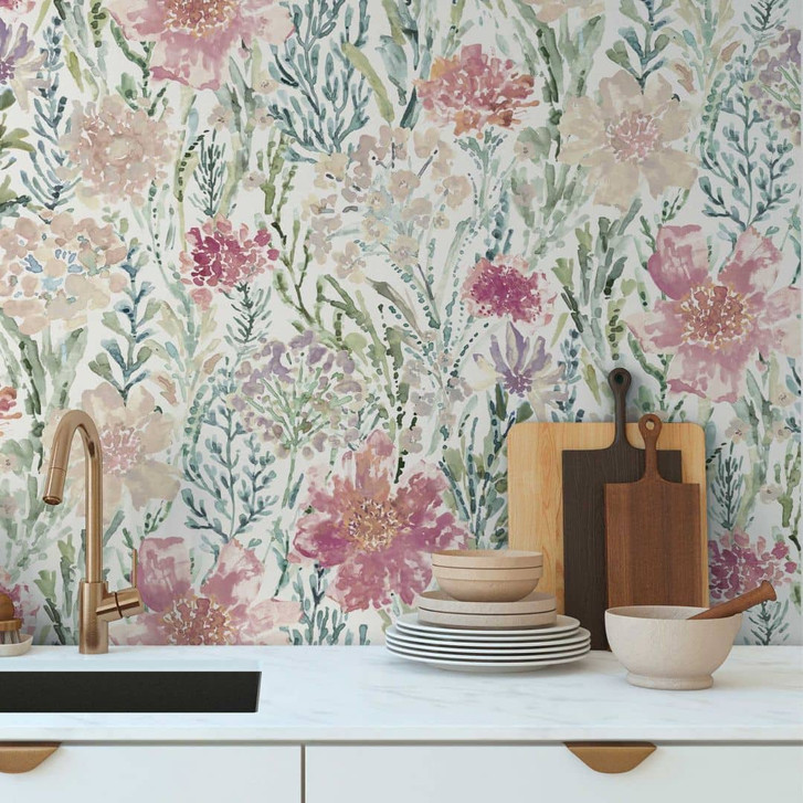 Blumentapete Aquarell Pastell Rosa - Florale Vliestapete - Romantisch