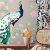 Blumentapete Bunt Grau - Vliestapete Designer Natur - Florale Tapete Pfau
